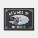 Vreemd welkom portret in zwart-wit met poetafdrukken, een foto van je geliefde hond, die je bezoekers oproept om op je hond te letten! Voeg de naam en de foto van je hond toe.