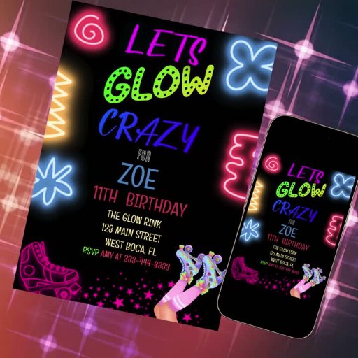 Let's Roll For, Roller Skate Glow Feest Uitnodiging