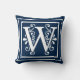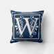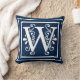 monogram, initiaal, elegant, blauw van de marine, wit, vierkant, grens, letter W