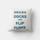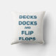 Dit leuke buitenkussen is geaccentueerd met het citaat, "Decks Docks and Teenslippers", waardoor het perfect is voor de boot, het huisje, het strandhuis, het dek of het zwembad.