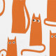 Leuk Sinaasappel en wit kattenpatroon Behang