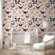 Leuke Blauwe Oranje Vlinder Bloemen Behang