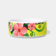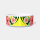 © Sunny Mars Design. Deze schattige, schattige kleine dierenvoeding of waterschaal heeft een geel, roze en groen bloemontwerp van tropische Hibiscusbloemen. Personaliseer het door de naam van uw hond of kat toe te voegen.