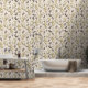 Olifant, neushoorn, aap, tijgerdansen, grillig patroon in beige tinten voor de kinderkamer, de kamer van kinderen
