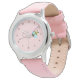 Een horloge met een doodle van een schattige hommel die voorbij zoemt. De bij laat een spoor achter dat een hart vormt. Lief en schattig horloge voor meisjes als verjaardags- of kerstcadeau. De roze achtergrond kan in aanpassingswijze worden veranderd.