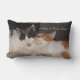 Foto van een schattige Maine Coon kat en een oranje Tabby kat slapen. ....... Aan de ene kant van het kussen staat "~Cats = True Love~, .aan de andere kant van het kussen staat "~Cute Katten~".