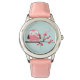 Aangepast horloge heeft een schattige vectorillustratie van een uil die op een kersenbloesem of een Japanse sakuraboom is neergestreken.