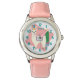 Een schattige witte lama draagt een blauwgroen, roze en witte deken op dit kinder polshorloge. Een groene potcactus is naast haar. Het afbeelding is geplaatst op een roze ragged edge rechthoek. De blauwgroen cijfers maken het horloge gemakkelijk te lezen. Dit ontwerp ziet er geweldig uit met verschillende polsbandkleuren, ook...bekijk ze!