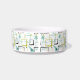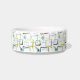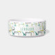 Deze fantastische moderne dierenkom uit het midden van de eeuw heeft abstracte vierkanten, starbursts en een boemerang in de kleuren aquablauw, geel, avocado groen en de naam van uw huisdier in een aquablauw casual lettertype. Voeg een leuk element toe aan de voertijd van uw huisdier!
