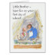 Een 'Have Fun on your first day at School' wenskaart voor een Brother, met een klein muisje dat het huis verlaat om op weg te gaan naar zijn eerste schooldag. Dit ontwerp is van een met de hand geschilderde aquarel illustratie van Judy Adamson. Je kunt de inside message personaliseren.