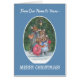 Een kerst Kaart met de groet, 'Van Ons Huis aan de Jouwe' en een familie van schattige muizen zingen kerstliederen. Dit ontwerp is van een handbeschilderde aquarel illustratie van Judy Adamson.