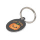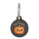 Een huisdier label met een schattige pompoen op een donkergrijze achtergrond voor je hond of kat. Personaliseer het met een naam en een telefoonnummer.
