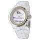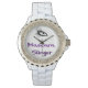Dit horloge is wit en blingy. Met een leuke mascara slinger in paarse glitter print