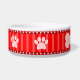 Hondenpoten en -botten © Sunny Mars Design. Leuke, stijlvolle aangepaste naam aanpasbare grote hond bowl met een prachtige rode strepen en polka stippen ontwerp met hond poot en hond bot om de naam van uw hond op te plaatsen. Perfect cadeau voor de beste vriend van man. Andere beschikbare kleuren.