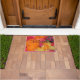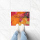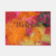 Deze deurmat is versierd met onze originele foto van kleurrijke roze, oranje en gele veren. De tekst is donkerrood paars. Een uniek, leuk cadeau voor een bruiloft of housewarming. Makkelijk te onderhouden. Alle rechten voorbehouden © 2015 Alan & Marcia Socolik.