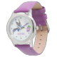 Schattig, meisjes, kleurrijke kolibrie, modern, bloemen, wilde dieren, dierlijke waterverf paarse horloge. Meisje, Perfect voor kinderen. Handgeschilderde illustratie van Monika Howarth. Personaliseer het met de naam van uw kind.