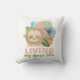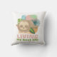 Een schattige sloth springt in pasteltropische bladeren. De ondertitel luidt: "Leven mijn beste leven langzaam." De tekst is in zacht pastelroze, groen en oranje om de tropische instelling na te bootsen.