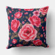 Een bloemmotief met rijke, levendige rozen in roze en rode tinten, naast delicate bloesems en bladeren, allemaal tegen een diepblauwe achtergrond. Het ontwerp moet een weelderig, romantisch gevoel overbrengen met een harmonieuze mix van kleuren."