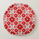 Levendig rood-wit bloempatroon met parel rond kussen