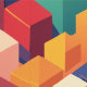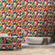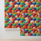 Dit behang is voorzien van levendige blokjes met een verscheidenheid aan kleuren, waaronder blauw, rood, geel, sinaasappel en groen.