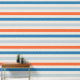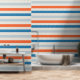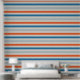 Creëer Een levendige en speelse kinderkamer met dit gestreepte patroonbehang in verfrissende blauwe en levendige oranje tinten. Perfect voor het toevoegen van helderheid en vrolijkheid aan de ruimte van je kleintje.