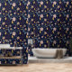 Transformeer je ruimte met deze boeiende peel en stick wallpaper. Tegen een diepe marineblauwe achtergrond komt een betoverend botanisch patroon tot leven. De grafische stijl is grillig en illustratief, doet denken aan handgetekende kunst. Gestileerde bloemen en gebladerte dansen over het ontwerp in zacht geel, groen, roze en wit, met delicate rode bessen die poppen kleur toevoegen. Elk element is ingewikkeld gedetailleerd, waardoor een levendig visueel tapijt ontstaat. Perfect voor het infunderen van uw interieur met natuur-geïnspireerde charme, dit behang balanceert levendigheid en rustgevende esthetiek.