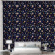 Levendige grillige bloemen en bladeren op Navy Blu Behang