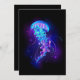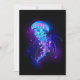 Groot, blauw, kunstmatig getrokken, gloeiende, heldere kwallen, met lange tentakels op zwarte achtergrond met paarse bioluminescentie. Lumineuze kwallen.