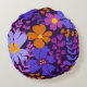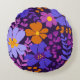 Verfris elke kamer met dit prachtige moderne ontwerp rond kussen. Het kussen heeft een levendig bloemmotief. Een mix van paarse, blauwe en oranje bloemen, aangevuld met delicaat blauw en paarse bladeren. Dit opvallende ontwerp is ideaal om een fris en levendig gevoel te geven aan uw interieur of kantoor.