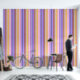 Levendige roze mauve citroen retro strepen behang