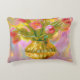 Levendige roze tulpen in gouden vaas accent kussen