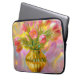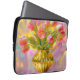 Levendige roze tulpen in gouden vaas laptop sleeve