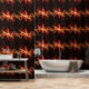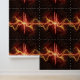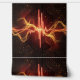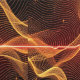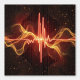 Een opvallend beeld van rode en oranje geluidsgolven met vloeiende lijnen en energiepulsen, waardoor een gevoel van ritme en beweging ontstaat tegen een donkere achtergrond.