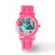 Een levendig roze horloge met een speels stripfiguurtje, perfect voor het toevoegen van plezier aan elke outfit.