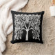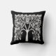 Kussen in een gestileerde, blad en tak, boom van het levensontwerp in wit op zwart