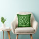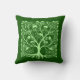 Kussen in een gestileerde tak en bloem, levensboom in lichtgroen op een donkere, pijngroene achtergrond