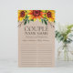 Deze prachtige rustige zonnebloemen LGBTQ Couple Name Game bridal of paren douchegelegant en charming zijn perfect voor elke tuin, botanische, rustige, romantische, florale, formele of vintage bruiloft. De voortreffelijke combinatie van gracieuze, multi-hued waterverf zonnebloemen en verstandigheid groen is debiet, delicaat en mooi. Dit leuke en gemakkelijke spel is zeker om veel gelach naar elke douche te brengen. Geef gewoon een vel aan elke gast (vergeet de pennen niet) en laat het plezier beginnen! Je zult verbaasd zijn over hoeveel mensen met lange woorden de namen van het gelukkige koppel gebruiken. Om het uw te maken uitgezocht eenvoudig deze sjabloon en type in de namen van de zeelieden aanpast.