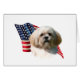 USA! Amerika! Roep je trots met deze geweldige vlag Patriottische achtergrond met dit AKC hondenras Italian Lhasa Apso in de voorgrond. Show je trots met dit ontwerp op een T-shirt, mok en nog veel meer!