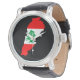 De vlag van Libanon staat boven de Libanonplattegrond en de hoofdstad van Beiroet is in het Arabisch geschreven. Vector Illustratie Geïsoleerd op wit. Copyright BluedarkArt De Kameleonkunst.