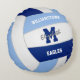 Dit sportieve volleybal thema gooi kussen beschikt over het realistische afbeelding van een licht en donkerblauw en wit volleybal waarop u de naam van de speler, monogram of varsity letter, team en mascotte naam op de voorkant en jersey nummer op de achterkant kunt aanpassen - door katz_d_zynes