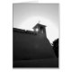 De zon stroomt door de klokkentoren in deze prachtige foto genomen op de St. Francis van de Assisi-kerk in Taos, New Mexico. Het afbeelding in zwart-wit is beschikbaar als omlijst druk, canvasdruk, poster, wenskaart, of briefkaart.