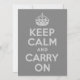 Grijze 'Kalm houden en doorgaan' moderne versie van klassiek poster.