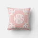 Licht Roze en Wit Grieks Sleutelcirkel Monogram KB Kussen