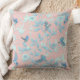 lichtblauwe bloemen en vogels, achtergrondlichtroo kussen