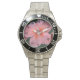 Lichtroze gewone tuinbloem. natuur bloemenfotografie. Klassiek roestvrij horloge.