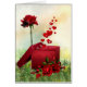 Rood cadeaudoosje, rode roos, rode harten die uit het cadeaudoosje komen en een cadeau van het wenskaart van de liefde sturen. Achtergrond gekocht van buisleidingen voor gebruik