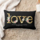 "Liefde Bruiloft Aquarel Bloem Zwart Goud Persoonlijk met uw Namen." Deze elegante kussen heeft woordkunst letters in een goudkleurige folie tint met roze en witte bloemen op een zwarte achtergrond, gekoppeld aan uw namen en trouwdatum. Elegant om te gebruiken voor uw bruiloftsreceptie of als bruidsjonker of huwelijkscadeau voor een speciaal stel. Kunst van internationaal erkende kunstenaar en ontwerper, Audrey Jeanne Roberts, copyright.