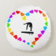 Prachtig rond kussen. Kleurrijke harten, in een hartvormig ontwerp omringen een prachtig gymnastiek silhouet op balans balk! Dit is een geweldig cadeau voor elke turner!
