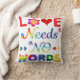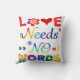 De Inspirerend autisme citaat, Love Needs No Words, met prachtige bloemtekeningen en puzzelstukjes voor autisme om autisme kinderen en hun families te ondersteunen.
