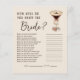 Voeg plezier toe aan je feest met onze Hoe goed ken je het bruid Vrijgezellenfeest spel! Met prachtige design daagt dit spel gasten uit om vragen over de bruid te beantwoorden, van haar favoriete film tot haar droombaan. Perfect voor het breken van het ijs en het vonken van het lachen, het is een heerlijke manier om te zien wie de bruid het beste kent. Gemaakt met elegantie en charme, zorgt dit spel voor een gedenkwaardig en boeiend vrijgezellenfeest voor iedereen.